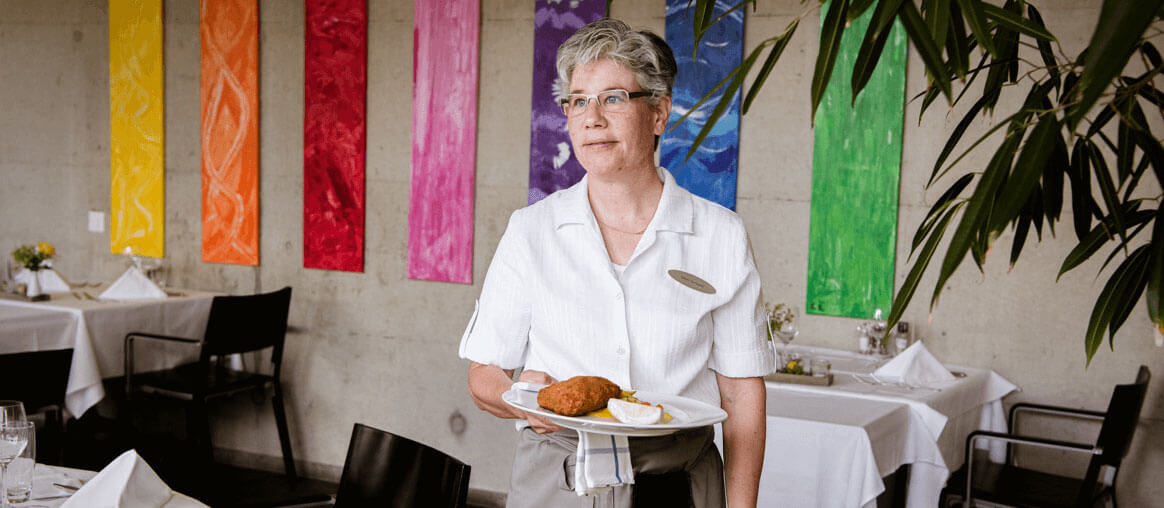Mit Herzblut und Leidenschaft verwöhnen unsere Gastroprofis mit und ohne Beeinträchtigung die Gäste. Unser Gasthaus ist ein öffentlicher Begegnungs- und Genussort, wo alle willkommen sind – das ganze Jahr von früh bis spät. Wir pflegen die Schweizer Tafelkultur. Das Angebot umfasst Klassiker der Schweizer Küche, gekocht aus frischen und regionalen Zutaten. Zu all unseren Speisen bieten wir passende Weine an. Parkplätze sind direkt vor dem Eingang vorhanden und das ganze Restaurant ist rollstuhlgängig. Weitere Informationen finden Sie in unserer Broschüre "Ankommen, wohlfühlen und geniessen"